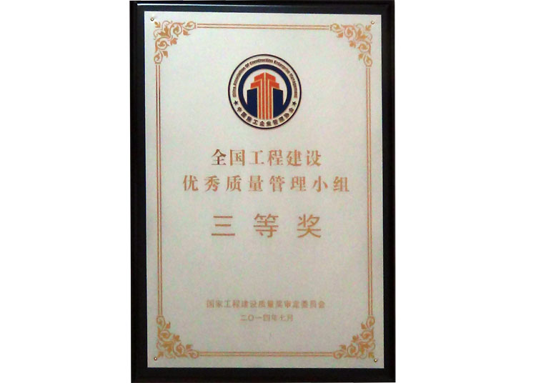 全國(guó)工程建設(shè)優(yōu)秀質(zhì)量管理小組三等獎(jiǎng)