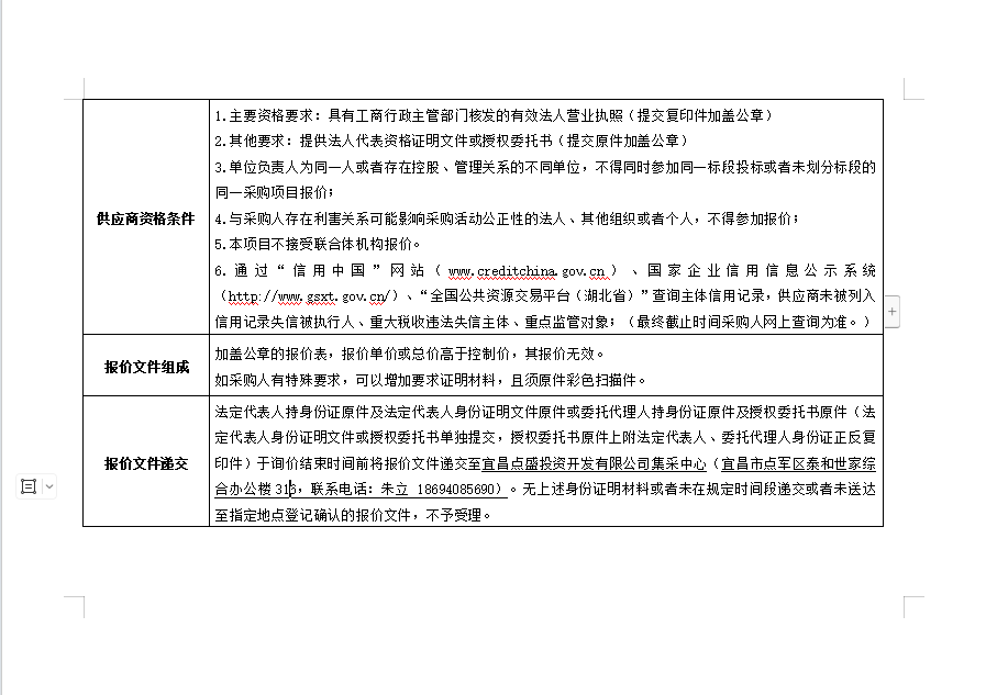 詢價(jià)公告