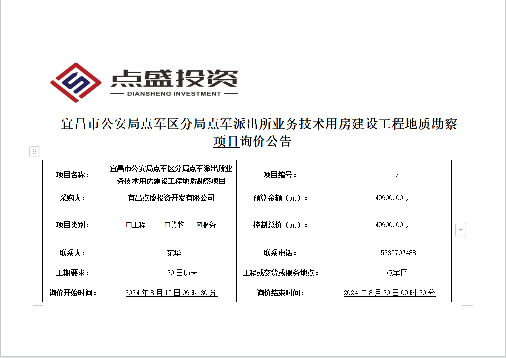 宜昌市公安局點(diǎn)軍區(qū)分局點(diǎn)軍派出所業(yè)務(wù)技術(shù)用房建設(shè)工程地質(zhì)勘察項(xiàng)目詢價公告