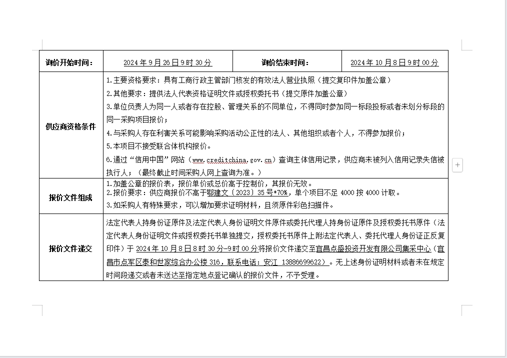 詢價(jià)公告