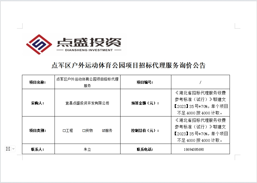 點(diǎn)軍區(qū)戶(hù)外運(yùn)動(dòng)體育公園項(xiàng)目招標(biāo)代理服務(wù)詢(xún)價(jià)公告