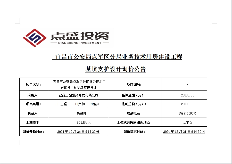 宜昌市公安局點軍區(qū)分局業(yè)務技術用房建設工程基坑支護設計詢價公告