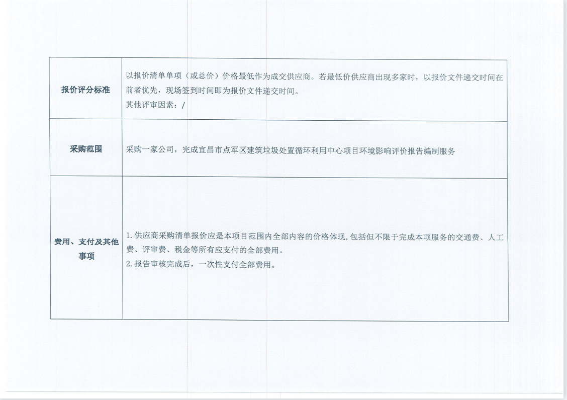 宜昌市點軍區(qū)建筑垃圾處置循環(huán)利用中心項目環(huán)境影響評價報告編制服務(wù)項目詢價公告